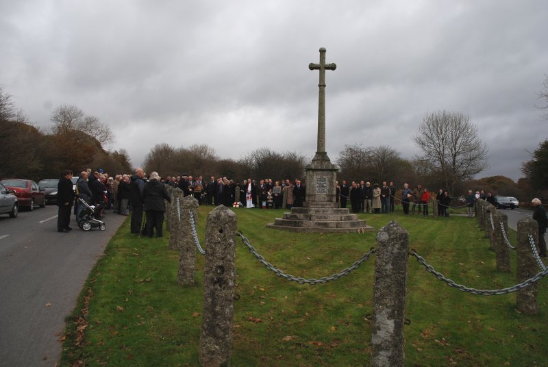 Devon. 21st January 2008 The HIG gave its first talk of the year, when we went to Yelverton War Memorial Hall to talk to the Yelverton Ladies Open Group. They all enjoyed the evening and we got some useful feedback too! 10th December 2007 The HIG can now offer you the opportunity to buy a Harrowbeer postcard or an A4 framed print of the graphic created for our interpretation boards. Postcards are available from: Knightstone Tea Rooms, Leg O' Mutton Corner Shop, Yelverton Stores, Leg O' Mutton Pub and Horrabridge Post Office and Tavistock Information Centre. The A4 Framed Print is available from Leg O' Mutton Corner Shop. If you live a long way away (America? Australia? Canada?) and aren't able to get to any of the above, please let me know and we'll see what we can do. It's the usual email address. 10th December 2007 The DNPA organised a working party to tackle some of the gorse and scrub growing on and around the dispersal bays today. It was pleasing to see about 30+ volunteers getting stuck into a major clearance operation! I didn't take any photos but I have been promised some! [Stephen Fryer] 11th November 2007 The Harrowbeer Interest Group laid a wreath at the Rememberance Service at Crapstone War Memorial on Sunday 11th November at 11am in memory of all those who lost their lives whilst serving at RAF Harrowbeer.