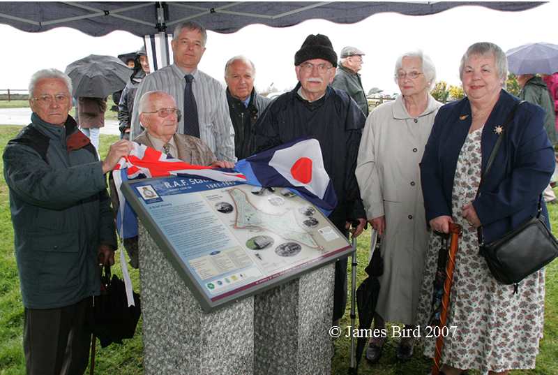 chairman Dave Dorey. Also, Please Note: Due to unforeseen circumstances, the Spitfire Society - South West Region will NOT be attending any of the weekends at Knightstone previously advertised. The weather for the Bank Holiday weekend looks very poor for Sunday & Monday. We will not be able to put up our displays if there are strong winds. 20th May 2007 "Spitfire Weekend" at Knigtstone Tea Rooms, Yelverton We will be at Knightstone Tea Rooms over the Bank Holiday Weeekend (26th, 27th & 28th May) with our displays. We will also be offering a guided walk around the Airfield at 2pm on each of the three days. The walk lasts about 2 hours and takes in most aspects of the Airfield's life. Also at Knightstone will be artefacts, memorabilia and a replica Spitfire Cockpit. Also expected over the three days are a varied selection of visiting WWII vehicles. 8th May 2007 On Tuesday evening (8th May) the Interpretation Boards on former RAF Harrowbeer were unveiled by Mrs Pam Fendall, the widow of the founder of RAF Harrowbeer Interest Group, and three WWll veterans: Frank Mares DFM, Richard Vavrecka and George Finegan - combined age 268 years! All three who served together at Harrowbeer in 1942. In spite of the wet and misty evening the unveiling was attended by about 80 supporters from schools, parishes, tourist organisations and by many individuals - all of whom had supported this community project to install Interpretation Boards on the former airfield site. The occasion was given a military flavour by the attendance of a Flight from 2312 (Tavistock) Squadron Air Training Corps, Officer Commanding Flight Lieutenant Phil Newcombe; and by former Royal Marine bugler, Tony Holder of Princetown. After a short speech of welcome by Stephen Fryer, Pam Fendal & Frank Mares DFM unveiled the board at Leg O' Mutton and, after moving to the other side of the airfield, George Finegan and Richard Vavrecka unveiled the board near the Rock. There was a reception in Knightstone Tea Rooms (the original Control Tower for RAF Harrowbeer) afterwards, during which guests were able to view the RAF Harrowbeer Interest Group displays, together with artefacts, etc., held at Knightstone by Michael, Lucy and Francis Hayes. Those conducting the unveiling