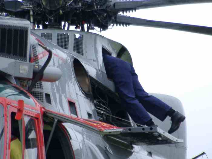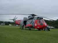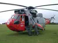 16th April 2005 We are all set to walk around the airfield next Sunday. We will be attempting to get to 99% of building remains! Also next Sunday, it's worth giving a plug to the Spitfire Society - South West Region, who will be holding their AGM outside Knightstone Tea Rooms. Their caravan (with memorabilia on it) will be there from 10am, with the AGM set for 3pm. We have also located the base of another Alun Williams turret, close to the road near Whistley. Photos in due course! 30th March 2005The walk on 28th was great fun, with 34 hardy souls braving the cold wind! (A pity because Friday and Saturday were lovely and warm!) Most of the walkers were unaware of the dispersed sites attached to Harrowbeer and found our commentary very interesting. One of our number had actually lived in Site No 12 (which we didn't visit) after the War and was able to give us some information on life there. Another remembered having delivered milk to the WAAFs on the WAAF site at Pound. He particularly remembered a huge mug of piping hot tea which he had to drink quickly as his colleague was in hurry to get on! We are now planning for the display on the 9th April in Buckland Monachorum Village Hall, and our second Airfield Walk on the 24th April, when we hope to do a complete tour of Harrowbeer itself. 25th January 2005Two walks and another showing of the RAF Harrowbeer display are planned for the coming months. Full details on the 'Airfield Walk' page (link above). We now know of the existence of four Bellman Hangars and one Blister hangar. Two Bellmans are in Exeter, and two more, plus the blister are in Plymouth. We are trying to discover which airfields they came from! 18th November 2004After putting up the info about the Bellman Hangars at Exeter, (buildings page) I have now been told of the existence of another two hangars, one Blister, one Bellman!!!! It remains to be seen where they came from. Watch this space! 13th November 2004There is a very strong probability, that there will be a reprint of the Airfield Focus book by Jerry Brewer on Harrowbeer, sometime in 2005. Watch this space for further information! 14th October 2004The Group put on a display in Buckland Monachorum Village Hall at the weekend to try and jog the memories of local people who remember the airfield. It was a very succesful two hours with lots of people calling in. Notable highlights were the visit of an ex-pilot who flew in to Harrowbeer once, stayed two days and then flew out! And a friend of an ex-pilot who donated his old leather flying helmet and goggles, complete with long cable. 20th September 2004Our Airfield Walk & Cream Tea was very successful, with over thirty people joining us for a very pleasant stroll around the airfield & dispersed sites. (and over £100 was raised for the Village Hall Kitchen Fund!) Many, many questions, and a bit of information gleaned as well. My thanks to all who came. I will try and organise another walk in the Spring, this time as a circuit of the airfield itself. 27th July 2004RAF Harrowbeer had a surprise visitor on 27th July 2004, when a Sea-King Air-Sea Rescue helicopter from RNAS Culdrose landed on the airfield, near to Yelverton. The helicopter was on a training mission over Dartmoor, when the crew were alerted by cockpit warning signs that the rotor gearbox oil pressure was dropping. They aborted their mission and decided to head immediately for Plymouth's Roborough Airport, but it soon became evident that they weren't going to make it. Pilot, Lieutenant Nigel Terry takes up the story. "With the oil pressure dropping, we needed to get down on the ground as quickly as possible. We started to look for a big field to land on and then spotted Harrowbeer and thought 'Perfect!' Once on the ground we could see immediately that we had suffered a major oil leak as the rear of the aircraft was covered in oil." The Sea-King (ZA166) is from 711 Squadron at RNAS Culdrose. There were three crew on board at the time, Pilot, Lieutenant Nigel (Nige) Terry, Lieutenant Jamie Chestnutt, and Leading Air Crewman 'Cags' Lacy. Attempts to repair a damaged oil pump during the afternoon ended in failure, meaning the aircraft had to spend the night on the airfield, whilst a replacement pump was brought up from Culdrose. Not surprisingly, the helicopter became an instant tourist attraction, with dozens of families dropping by to take a look at the stranded aircraft. Lt Terry and Lt Chestnutt patiently spent the afternoon explaining over and over again the reason for them being there! When the Dartmoor Ranger arrived, she dashed of to get them a 'brew' from Knightstone Tea Rooms! As was pointed out to Lt Terry, nothing much exciting happens in Yelverton! ZA166 was following in the footsteps of her forebears by landing at Harrowbeer, as during the Second World War, Air-Sea Rescue craft of 276 Squadron were based at the Airfield. Many pilots were rescued from the English Channel by the crews of the Supermarine 'Walrus' flying boats of 276. Footnote: ZA166 was repaired by the following afternoon and took off about 3pm to return to Culdrose